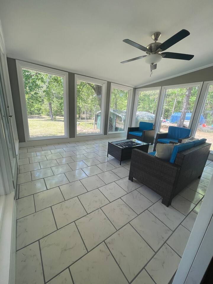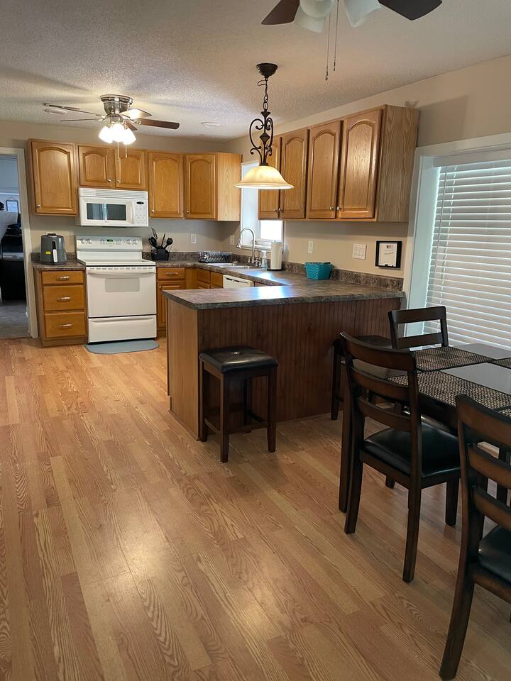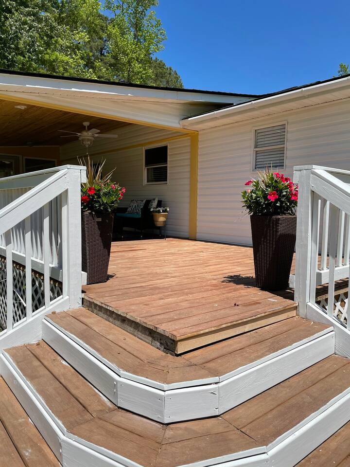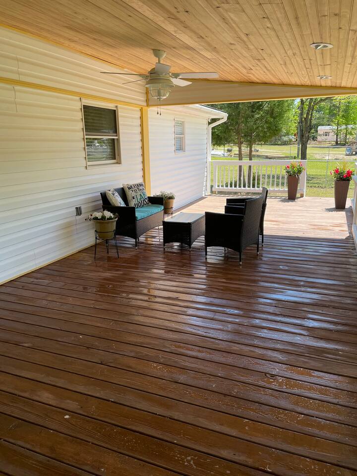 This is a beautiful updated house, we really enjoyed our stay. The kayaks was definitely a plus! There is an awesome back porch for family time. We was initially going for a weekend to spend time on the lake. Unfortunately it rained the entire weekend, with the back porch in place we was still able to spend time outside. House was very clean upon the arrival. Easy accessible, convenient location to go to town and everything.